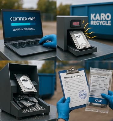 KaroRecycle securely destroyed our data and provided compliance certificates. The team was very professional.